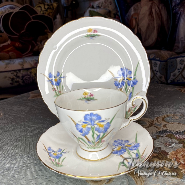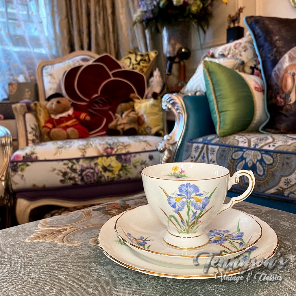 “Blue Iris” Teacup & Saucer Trio
