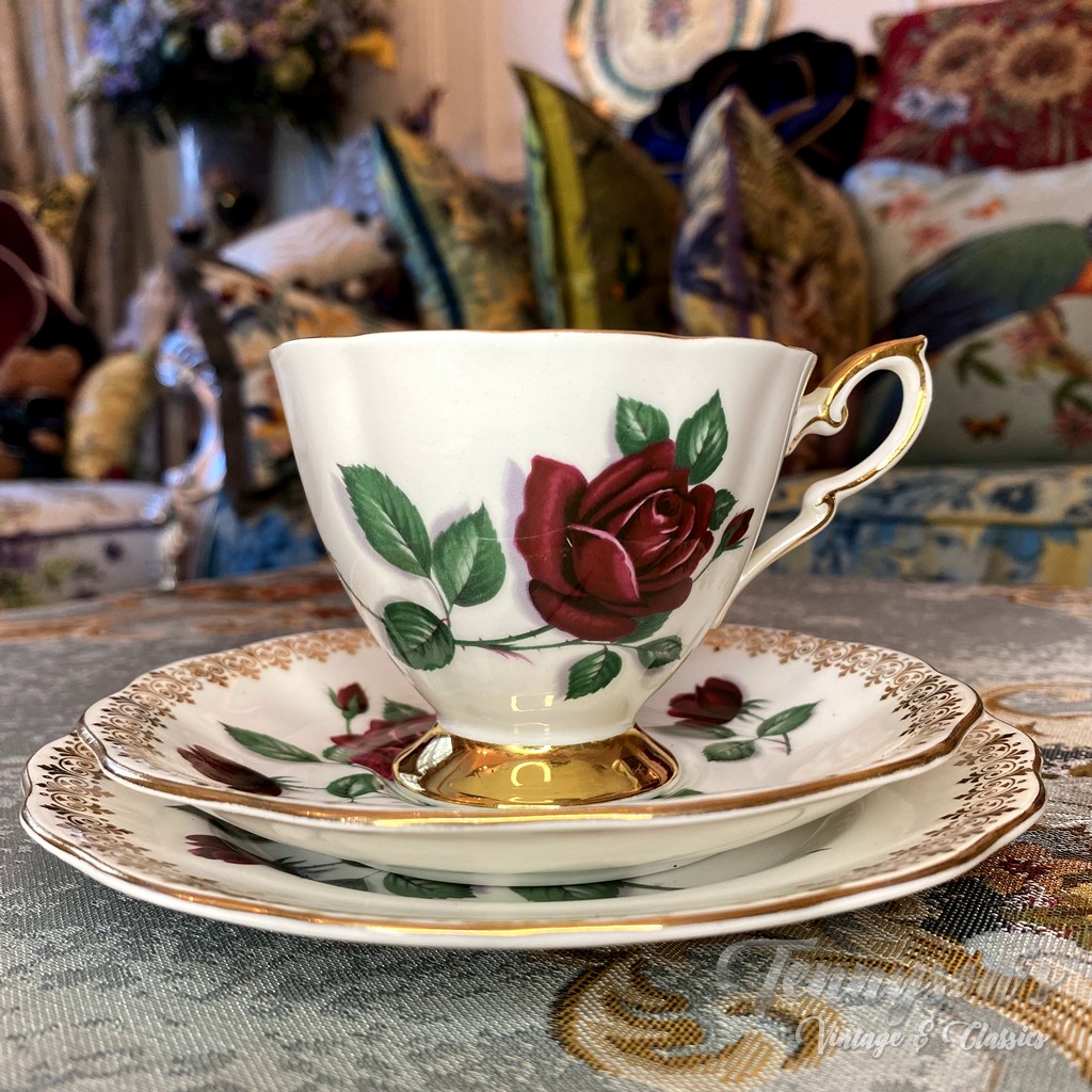 “Red Velvet” Teacup & Saucer Trio
