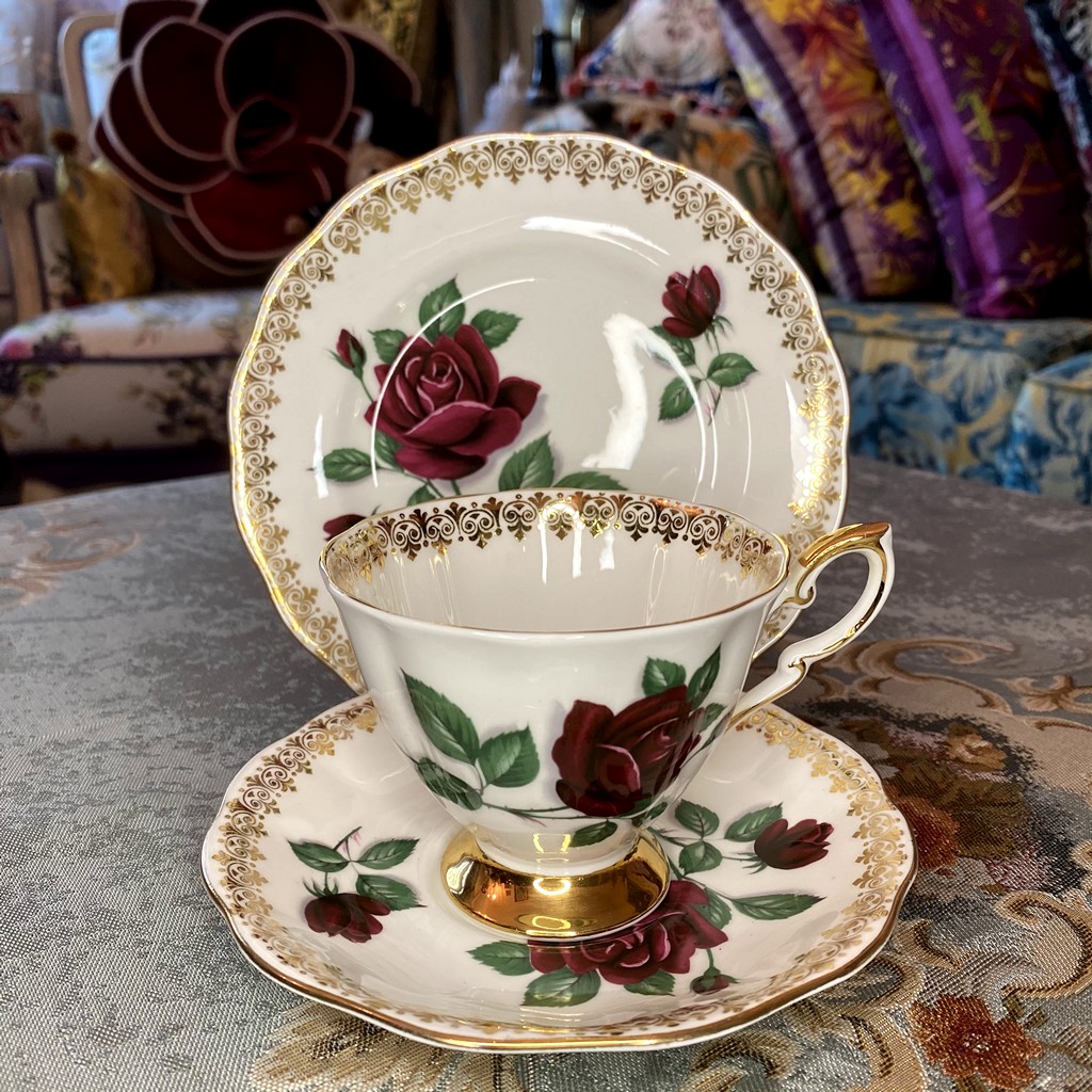 Royal Standard Red Velvet Teacup & Saucer Trio